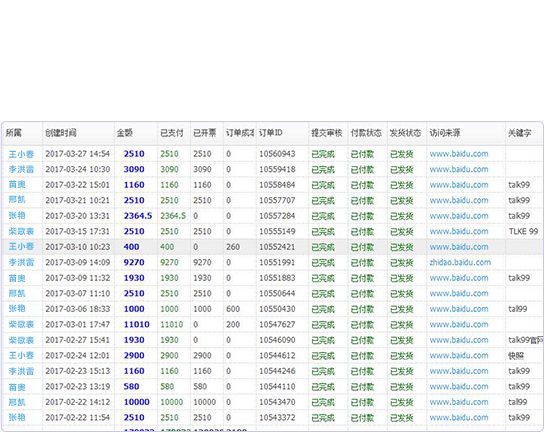 每个订单都设定了付款、发货、开票、录入成本、确认提现等流程控制点,方便企业进行过程管控