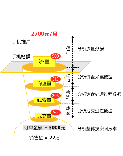 自动生成营销漏斗图,可以查看每天、每月的整体运营情况和转化情况