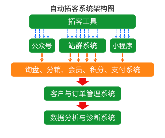 传统企业通过拓客系统给每个员工克隆1个分站,给每个拓客渠道克隆1个分站,给兼职销售克隆1个分站,真正实现全员、全网拓客